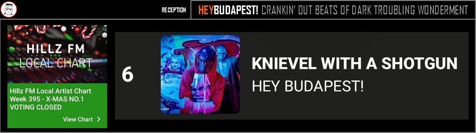 HILLZ FM broadcasts from the heart of Hillfields in Coventry , an area with many social and economic problems but also a rich and diverse ethnic heart and community feel. Their Local Artists Chart is all about putting local talent in the spotlight and the ENJOY RADIATION RESPONSIBLY track KNIEVEL WITH A SHOTGUN. rose steadily throughout November and December 2025. The climb culminated with a number six slot in the Xmas Chart as voted for by the station's listeners.
