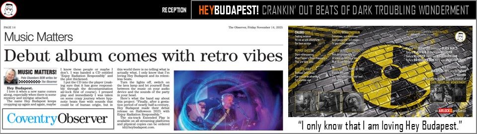 Soon after its release on Halloween 2025, the ENJOY RADIATION RESPONSIBLY EP made a very positive impression on Pete Chambers in his MUSIC MATTERS column in the COVENTRY OBSERVER newspaper.