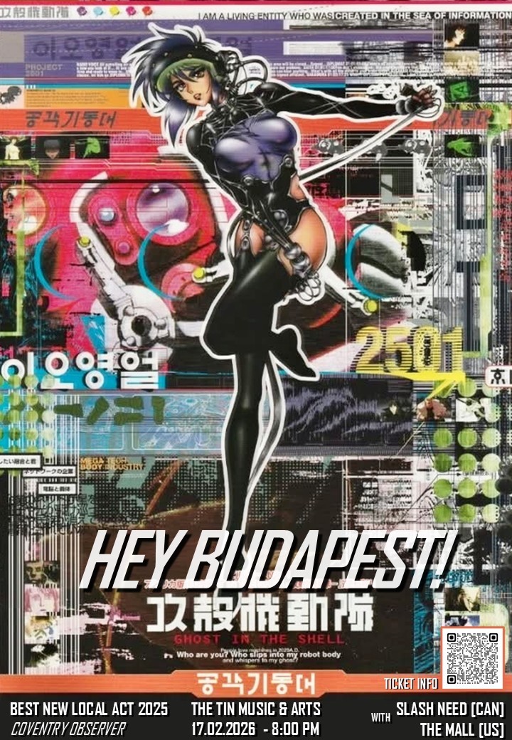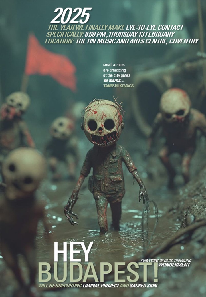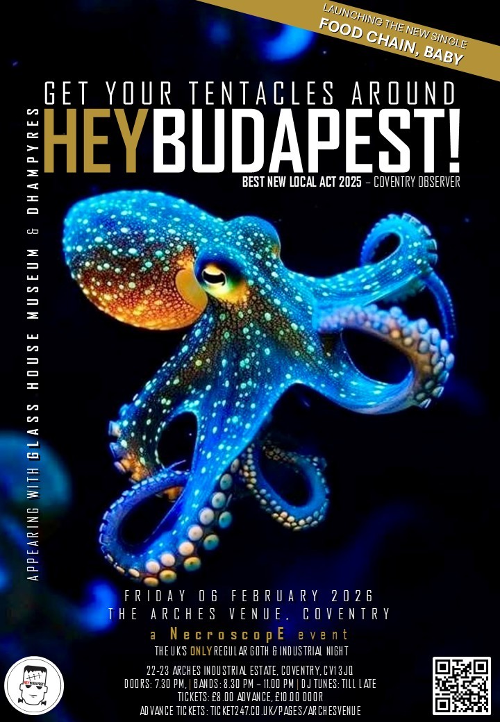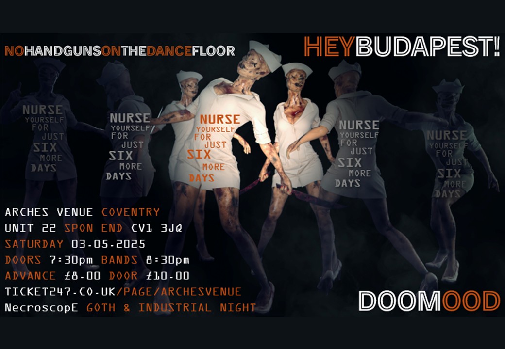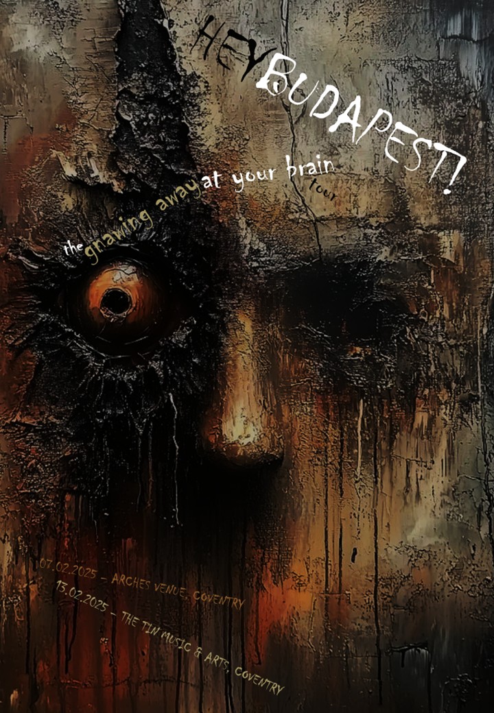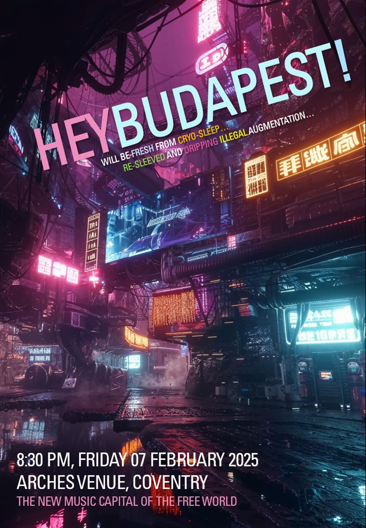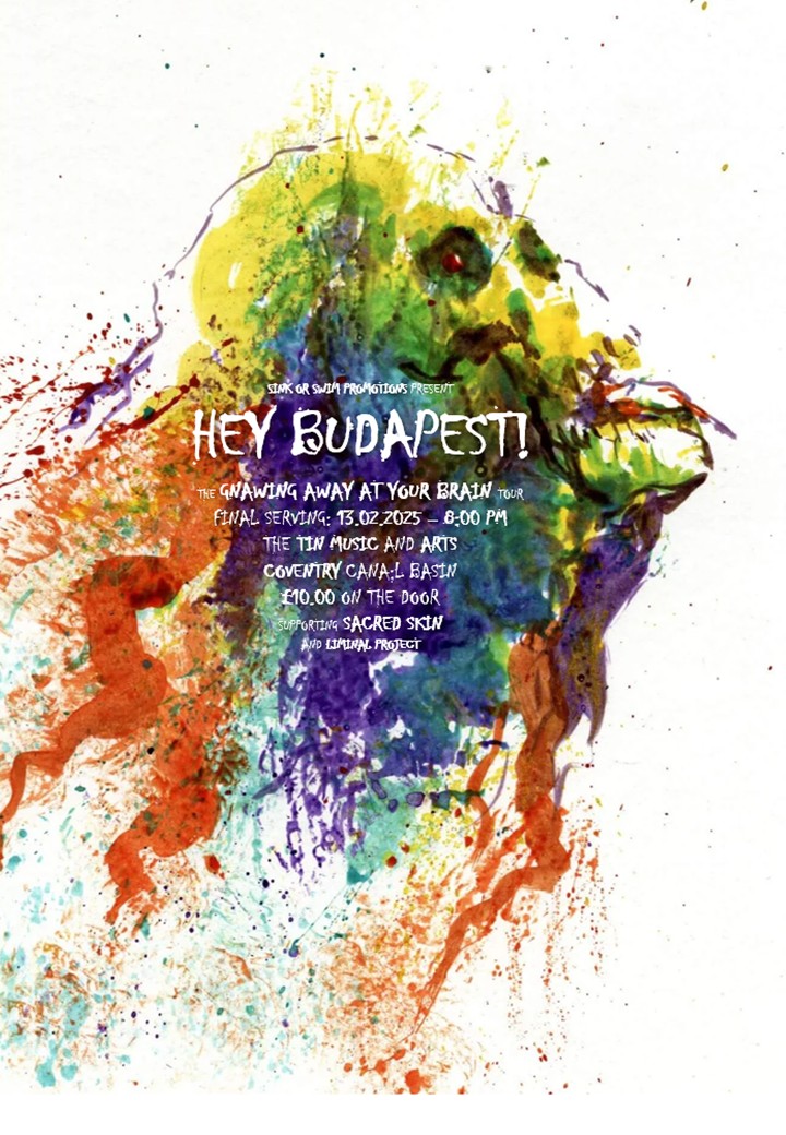 HEYBUDAPEST! have played live on five occasions in their hometown of Coventry right in the heartland of England. These performances have been advertised and celebrated with some eye-catching and potentially stomach-churning poster artwork!